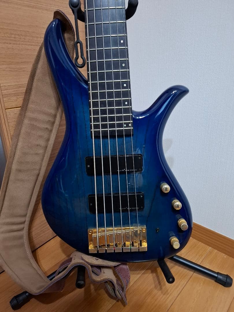 SpectorのEURO4、2000年代前半に新品購入したチェコ製のスルーネックモデルです。機材が増え出品することにしました。ピックアップはEMGのPJタイプでしたがショップにてザクりをしてもらい、ハムバッカーのEMG35DC 2基に変更。その為フロント側は上下に僅かな隙間ありますが、ボディもピックアップも黒色の為ほとんど気にならないかと思います。また現在は18V使用となっていますが電池の配線を一つ外すと9Vでの使用も可能です。18Vのほうがパワフルでタイト、9Vのふくよかでほうが丸みのある音という印象です。アンサンブルに合わせてお試し下さい。フロントとリアピックアップの間に自作のフィンガーランプが付いています。穴あけ加工はなく両面テープでの設置で取り外し可能です。昨年ベース店に持ち込み一通り点検・メンテナンスを実施。ネックやピックアップの高さ、ブリッジ駒の高さ調整など行なってもらいました。フレットは8割程度残っておりまだすり合わせは必要なし。ネックは若干のハイ起きがあるも目立ったビビりや音詰まりが無いため問題ないとのことでした。※ネックについて弾き終わりに弦を緩めておくとハイ起きは解消されストレートになります。弦を緩めるか緩めないか論争はありますが、このベースについては緩める方が良いようです。トラストロッドは購入後に1度と昨年のメンテナンス時に1度回した程度なのでまだまだ余裕はあります。ボディ メイプルネック メイプル指板 ローズウッドピックアップ EMG35DC(アクティブ18v)スケール 34インチ重量 4.2kg弦高 1弦2.0mm、4弦2.2mm程度弦はダダリオのNickel Wound Bass Light 45-100 SCHALLER製のストラップピン(標準装備)社外品のソフトケースをお付けいたします。そこそこしっかりとした前後・全周に肉厚パッドがついた収納の多いケースです。現在同モデルは新品価格で40万から50万円程度のようです。写真参照にて上記の状態をご理解の上ご購入下さい。すり替え防止のため返品は不可とさせて頂きます。ご理解の程よろしくお願い致します。#spector#スペクター#ssd#EMG35DC#warwick#ワーウィック#EMG#streamer#rex4| カテゴリー: | ホビー・楽器・アート>>>ベース>>>エレキベース |